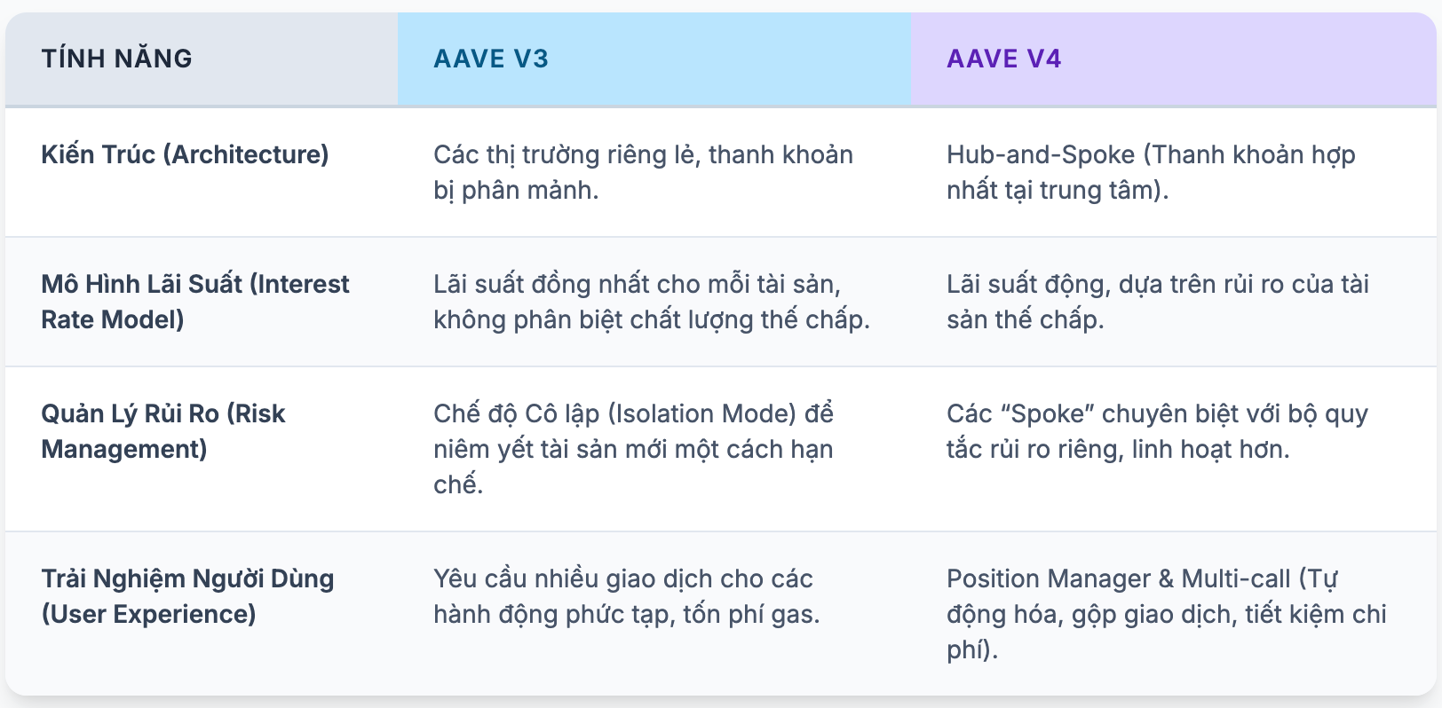 Bảng 2: So Sánh Nhanh: Aave V3 vs. Aave V4